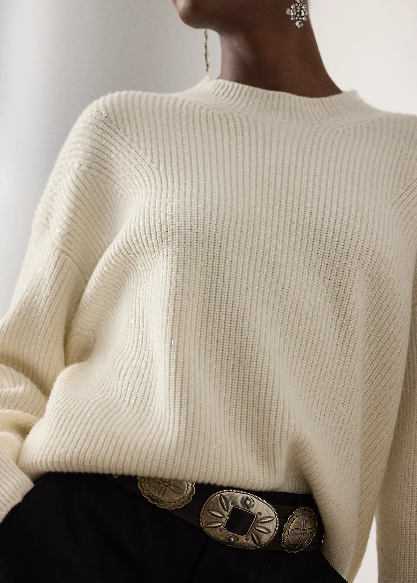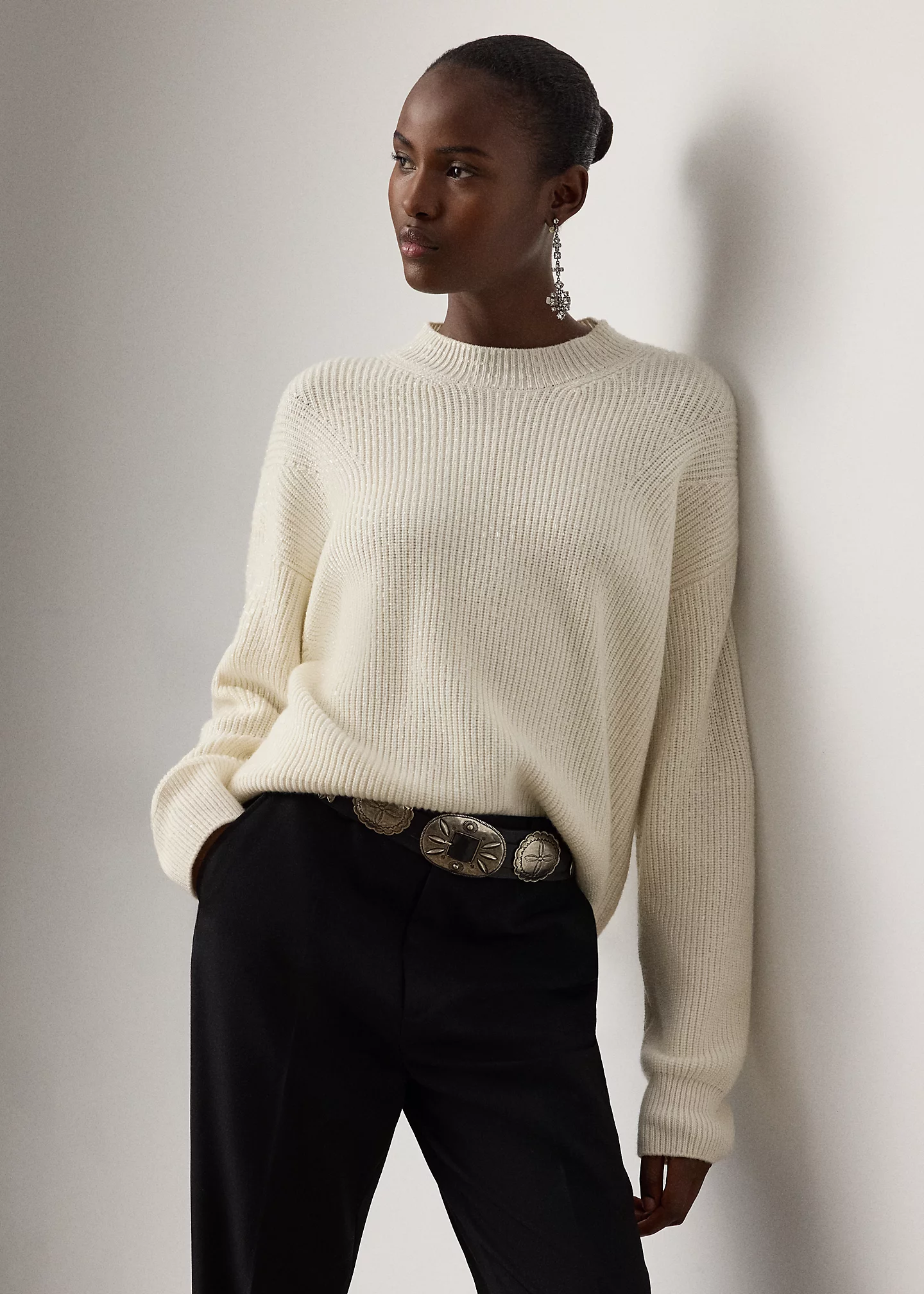 - Long sleeves with rib-knit cuffs. Dropped shoulders.