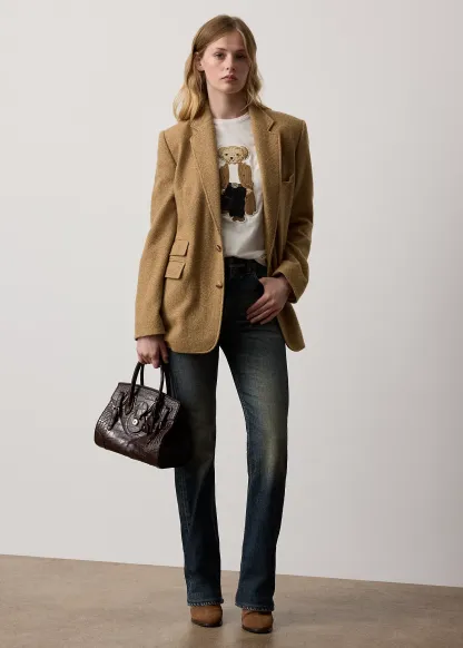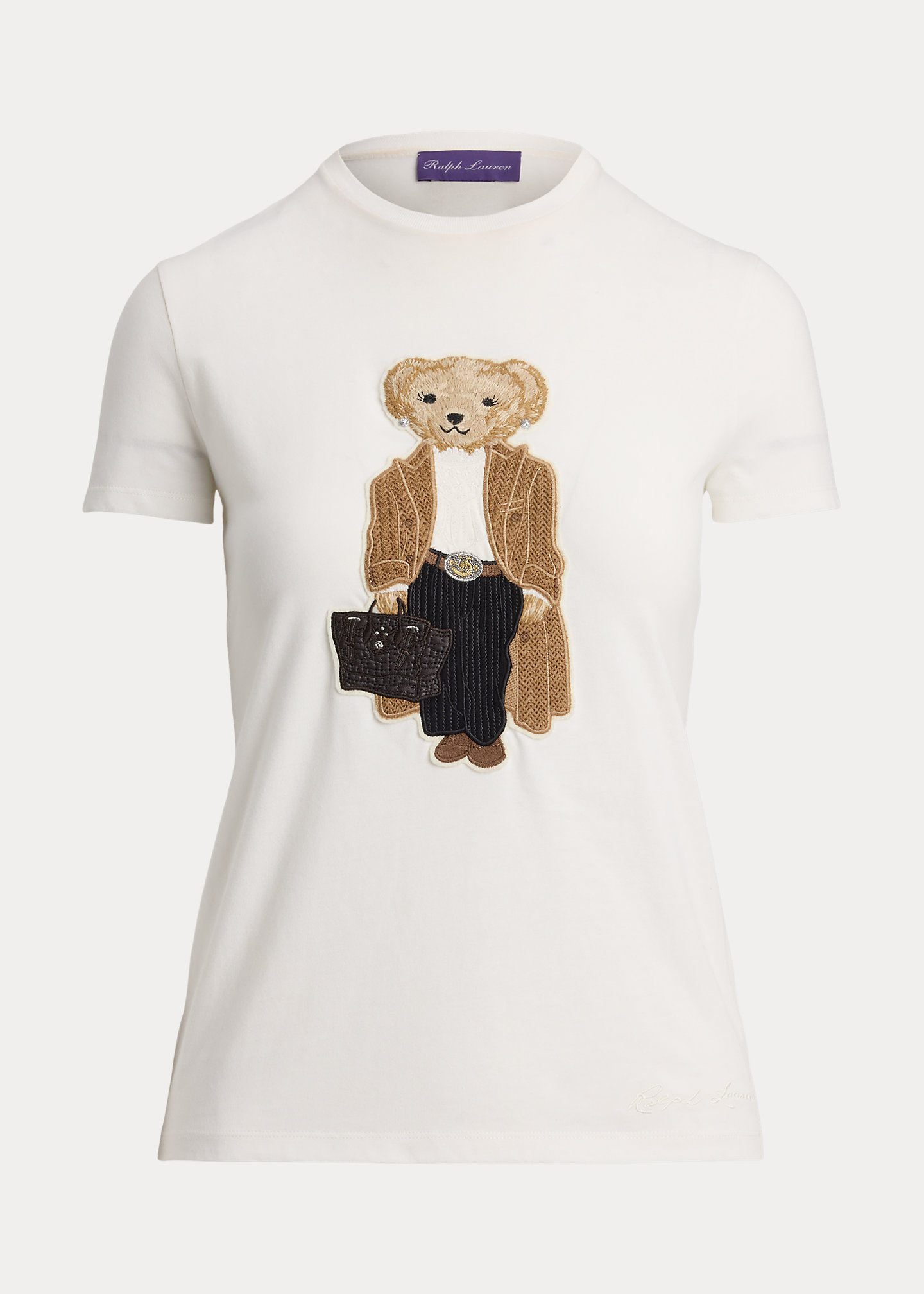 - Polo Bear patch at the center front. Script “ralthtph lauthtren” embroidery at the left hem.