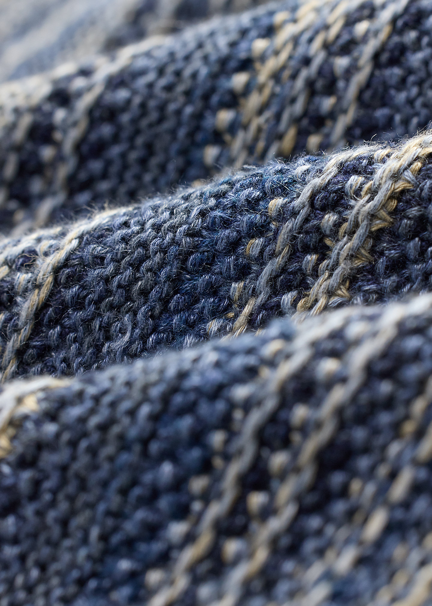 - Dyed with indigo, which may rub off onto fabrics, leather, and upholstery.