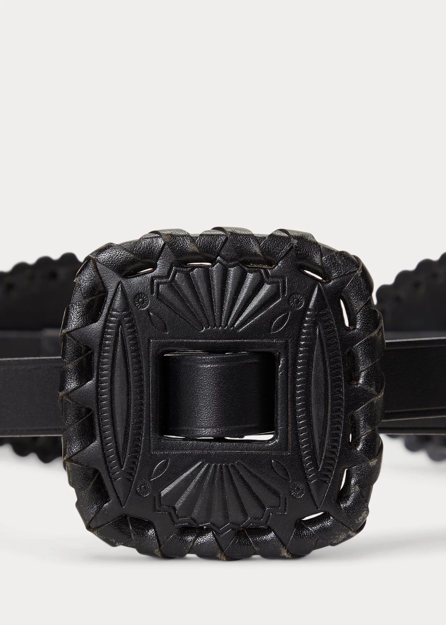 - Single-prong leather buckle.