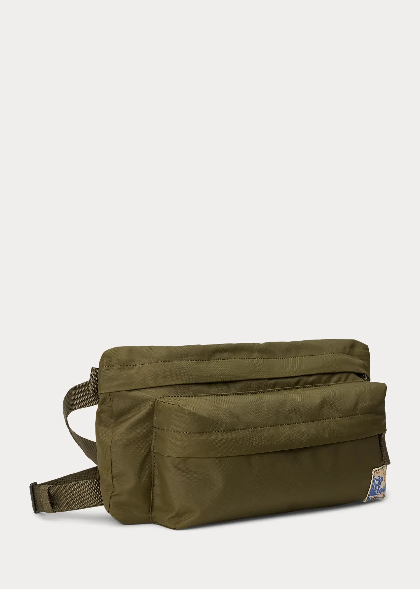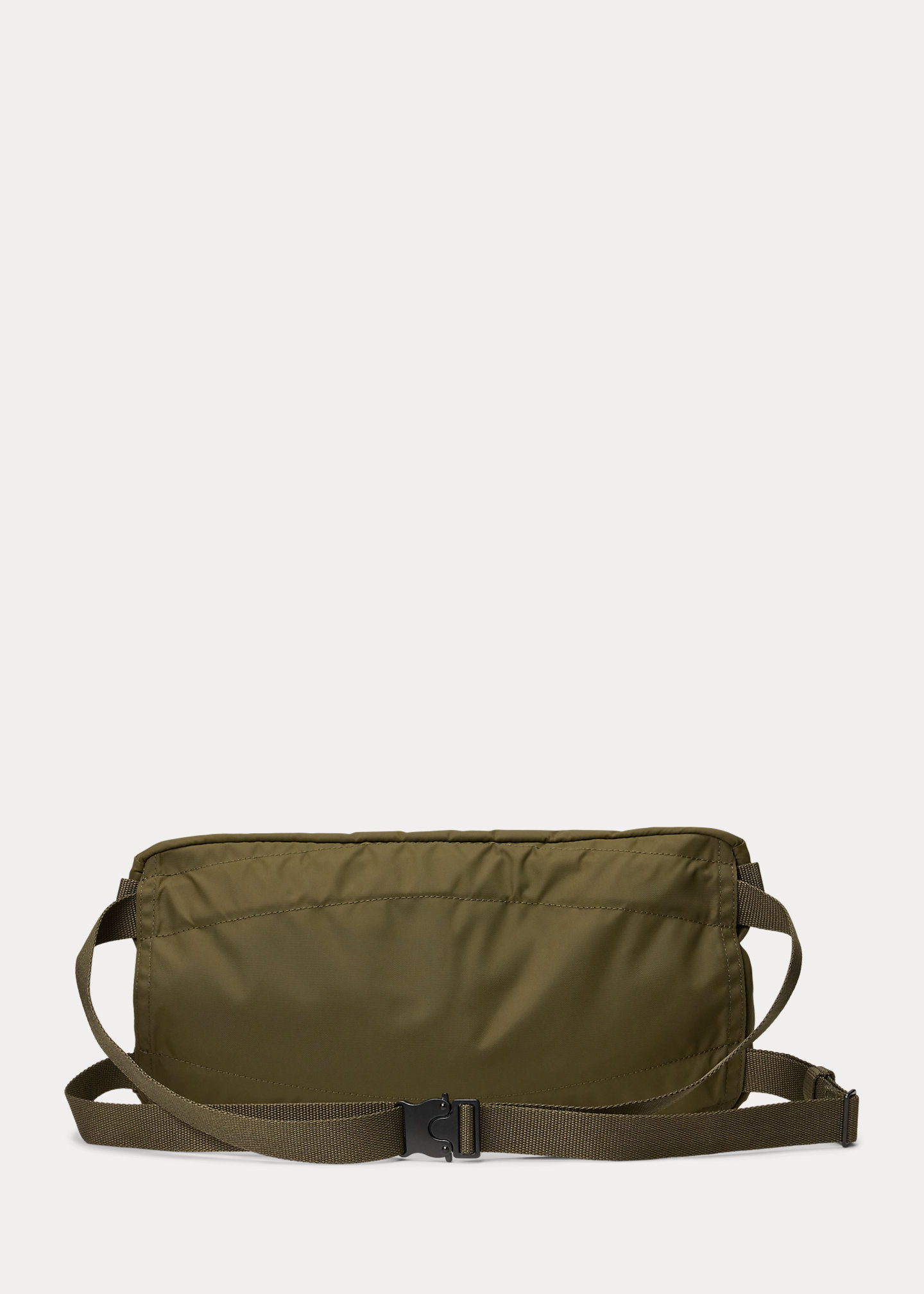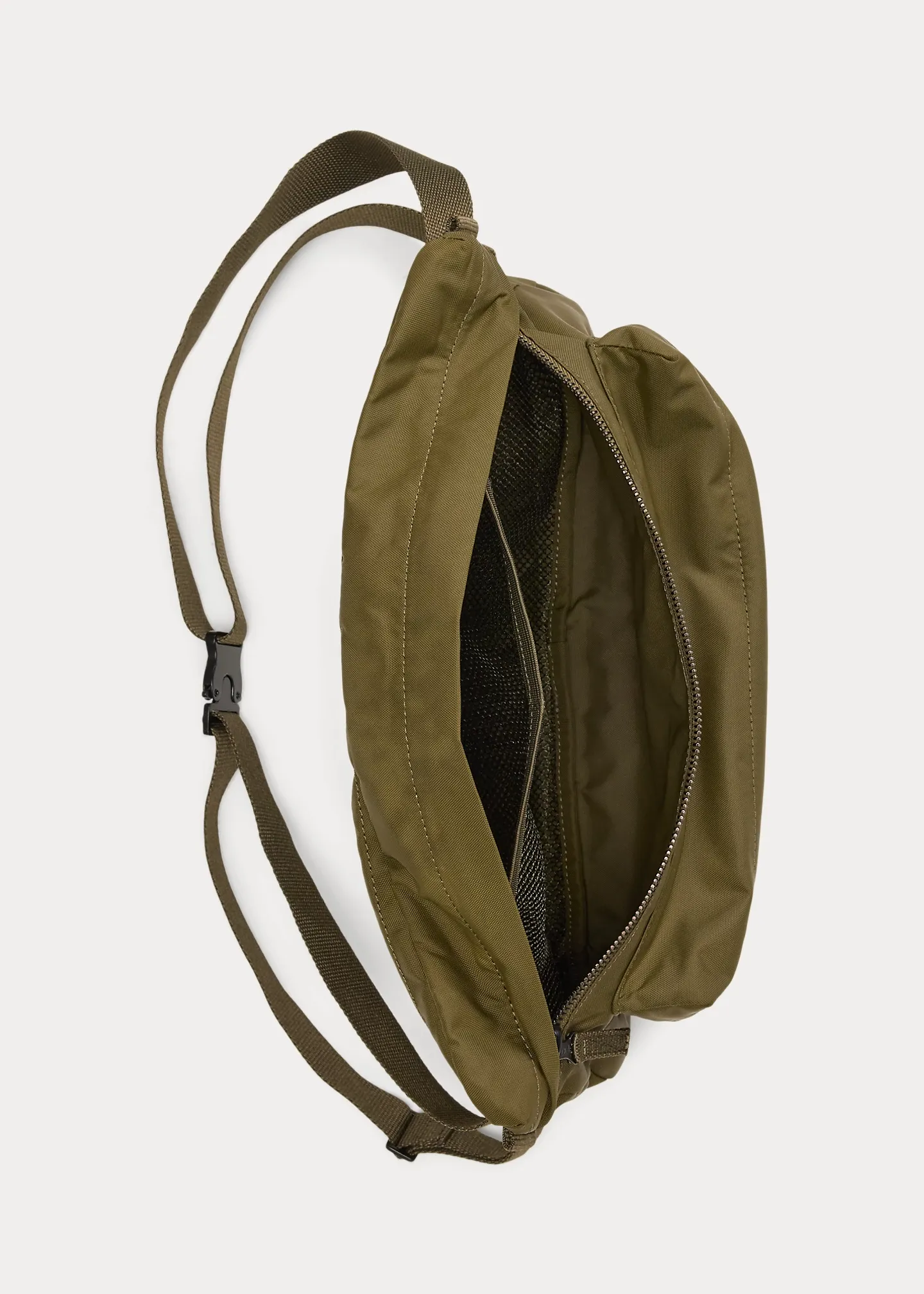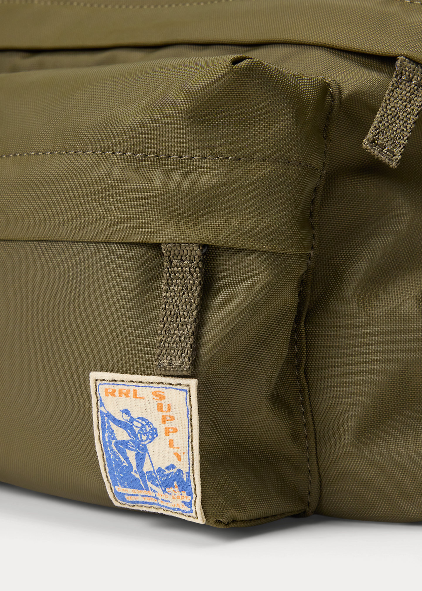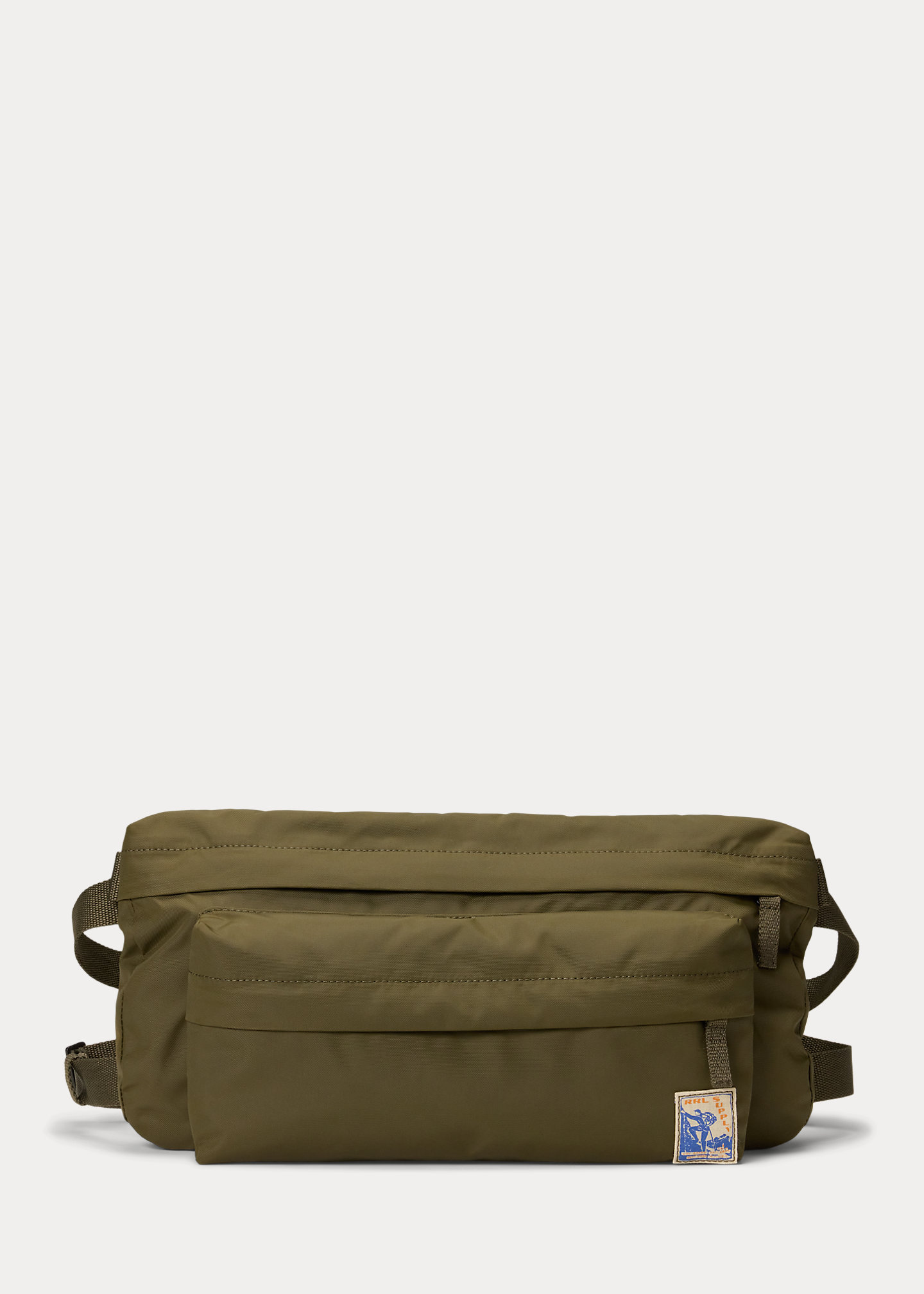 - Front zip pocket. Interior mesh slip pocket with elasticized binding.