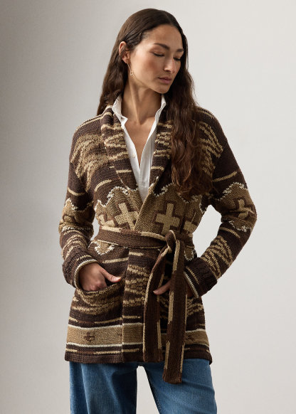 Silk-Linen Shawl-Collar Cardigan