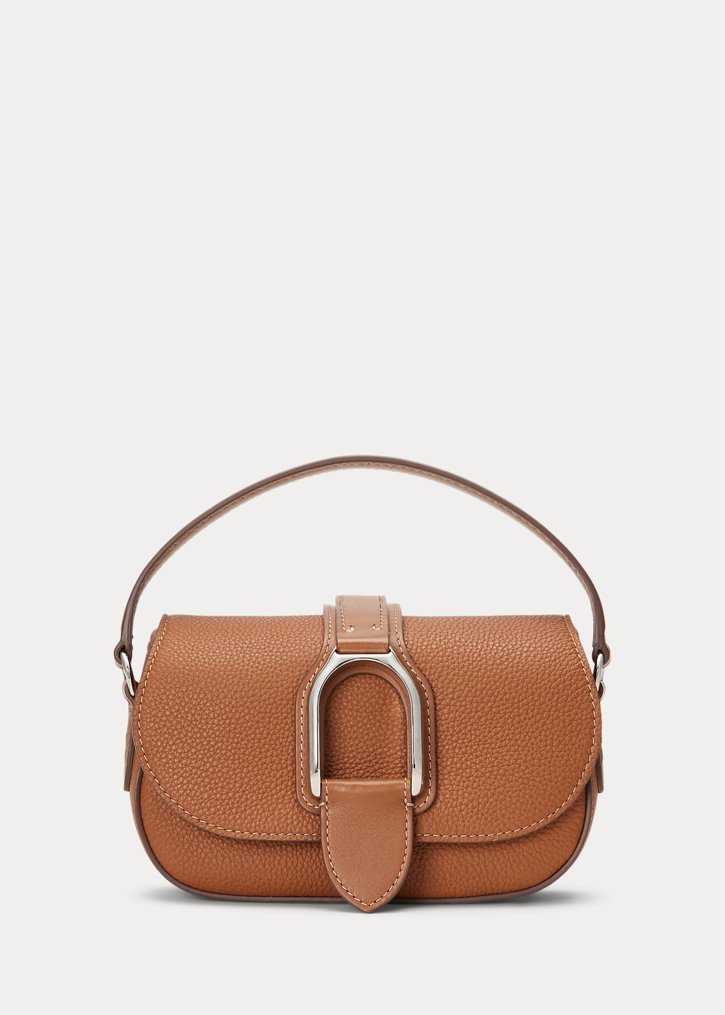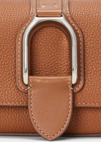 - Polished stirrup buckle at the front fold-over flap. Stirrup buckle engraved with “ralthtph lauthtren” at both sides.