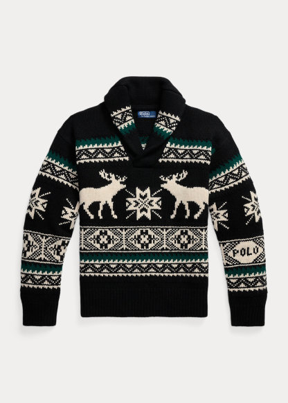 Wool-Blend Elk-Graphic Sweater